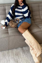 Experience effortless style and comfort with the Margovil Drop Shoulder Striped Pullover Sweater. Featuring a relaxed drop shoulder design and classic stripes, this sweater is perfect for everyday wear. Its soft fabric keeps you cozy, while the casual fit allows easy movement, making it an ideal choice for layering or standalone looks. Update your wardrobe with a versatile piece that blends comfort and timeless fashion.