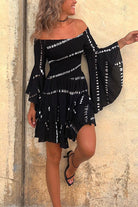 Margovil Off Shoulder Bell Sleeve Tie Dye Mini Dress