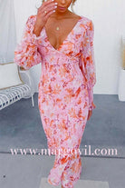 • Light up any room with the beautiful V Neck Long Sleeves Smocked Fairy Floral Mermaid Midi Dress! This dress features a bold floral pattern and elegant smocking detailing, perfect for special occasions. Feel beautiful and confident in this gorgeous dress; be admired, be noticed and be remembered!
