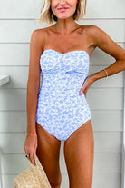 Floral Print Strapless Bandeau One Piece Swimsuit