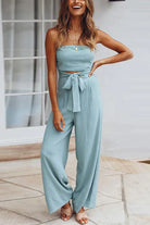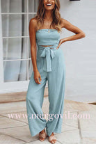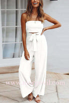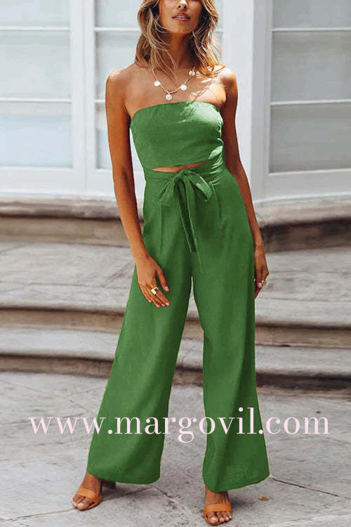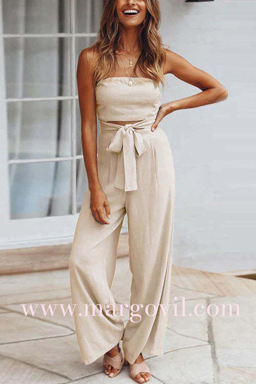 Margovil Off Shoulder Bow Tie Waist Wide Leg Jumpsuit