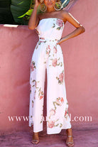 Margovil Off Shoulder Tie Waist Wide Leg Printed Jumpsuit