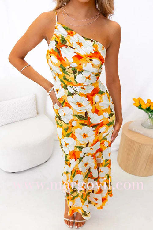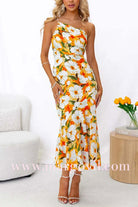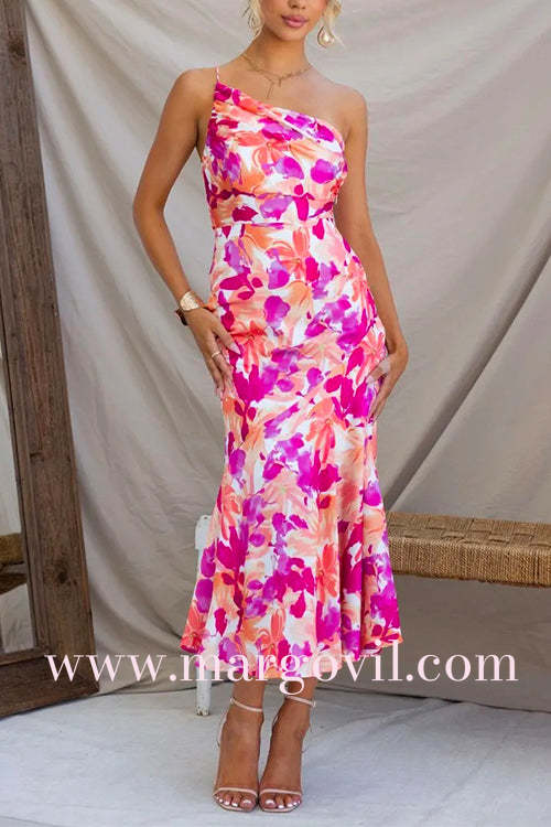 Margovil One Shoulder High Waist Mermaid Floral Cami Dress