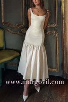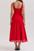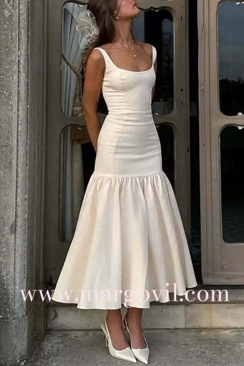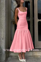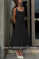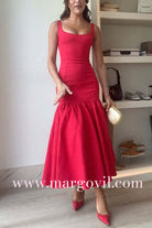 • Slip into effortless elegance with the Margovil U Neck Sleeveless Ruffle Bodycon Midi Dress. The figure-hugging design, combined with the U neckline and sleeveless style, creates a flattering silhouette. The ruffle detailing adds a touch of femininity, making this dress perfect for any occasion.
