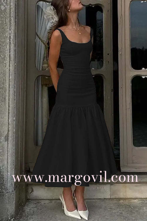 Margovil U Neck Sleeveless Ruffle Bodycon Midi Dress(5 Colors Available!)
