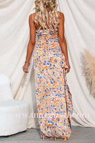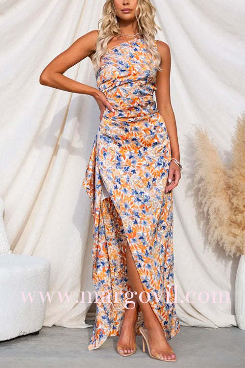 One Shoulder Sleeveless High Slit Floral Maxi Party Dress