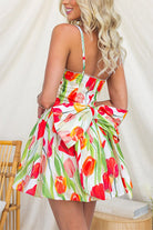 Watercolor Tulip Print Fit and Flare Mini Dress with Statement Back Bow
