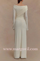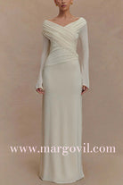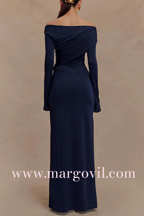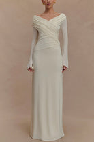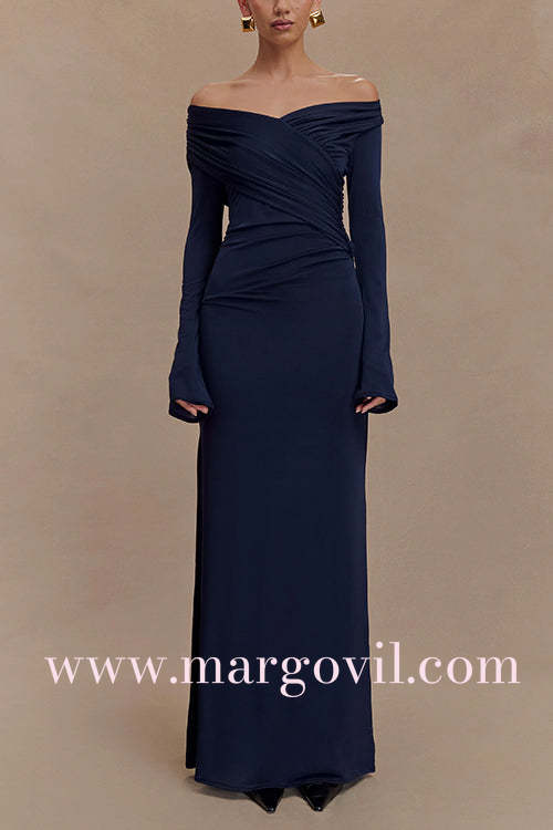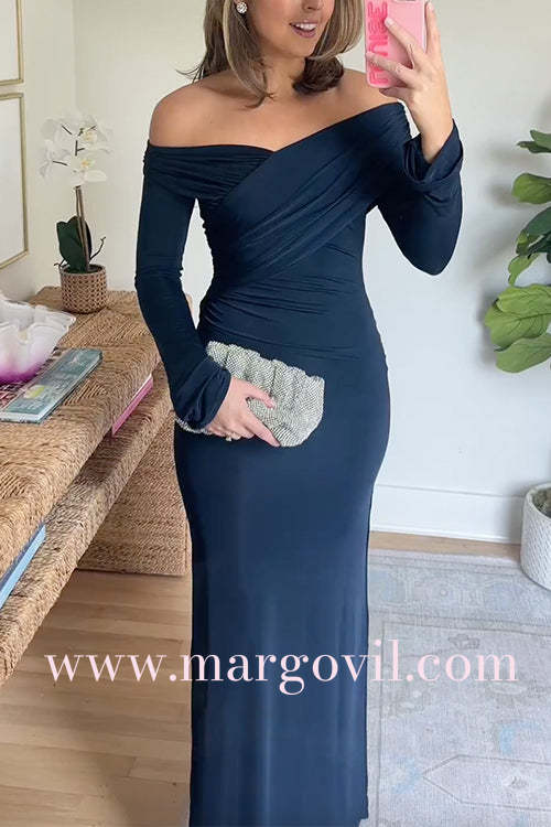 Elegant Off Shoulder Long Sleeves Ruched Maxi Dress