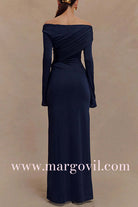 Turn heads effortlessly in this Elegant Off Shoulder Long Sleeves Ruched Maxi Dress. Designed with a flattering ruched detail and graceful off-shoulder neckline, this dress enhances your silhouette while offering comfortable long sleeves. Its flowing maxi length creates a timeless, sophisticated look perfect for special occasions or evening events. Embrace elegance and confidence with a dress that combines style and comfort seamlessly.