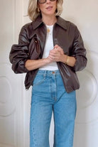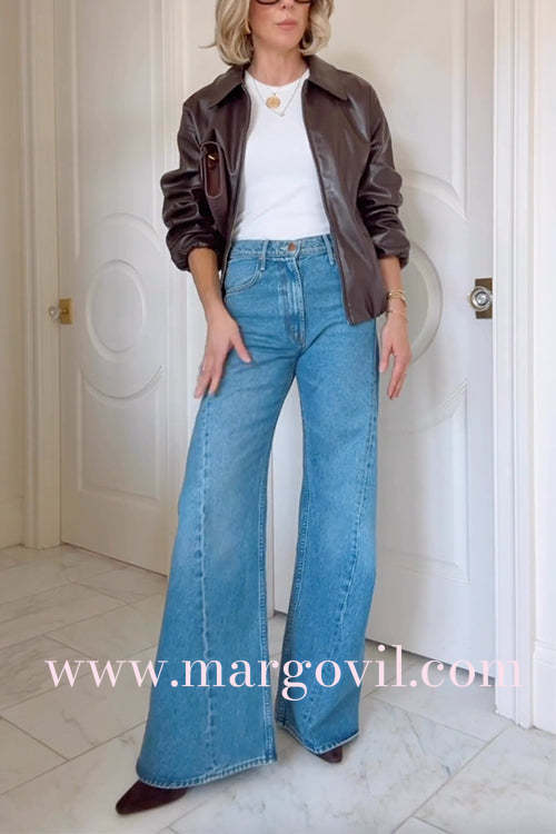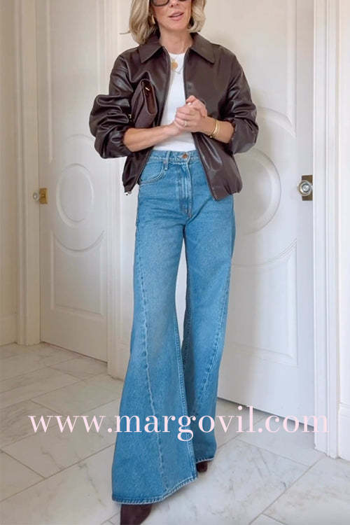 Margovil Lapel Zip Up Faux Leather Bomber Jacket