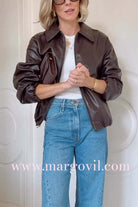 Step up your fashion game with the Margovil Lapel Zip Up Faux Leather Bomber Jacket. Featuring a sleek faux leather finish and a stylish lapel collar, this jacket brings a fresh, edgy vibe to any outfit. The secure zipper closure provides both comfort and a sharp, fitted silhouette, making it ideal for casual outings or nights out. Combine warmth and contemporary style effortlessly with this essential wardrobe piece.