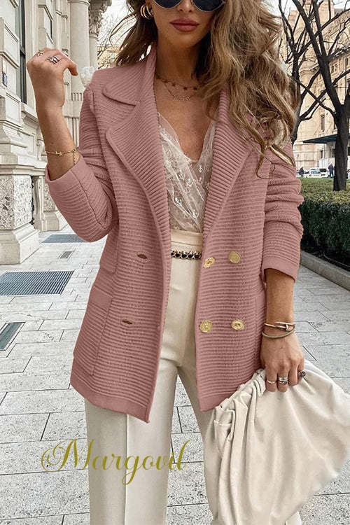 Wrap yourself in effortless style with our Margovil Double Breasted Textured Cardigan! This cozy cardigan features a double-breasted design and convenient pockets, perfect for keeping you warm and stylish. Elevate any outfit with this must-have wardrobe staple. Order now and experience the ultimate in comfort and fashion!
