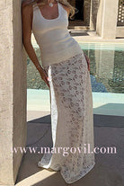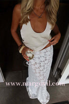 Margovil Elastic WaistBand Lace Hollow Out Maxi Skirt