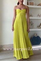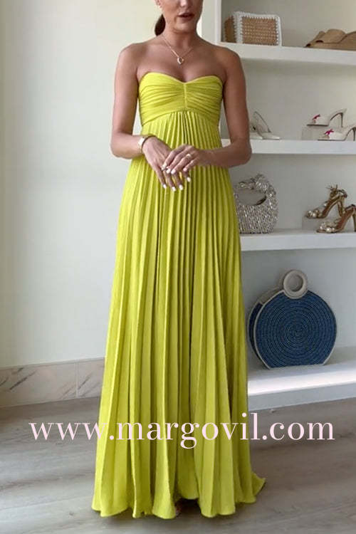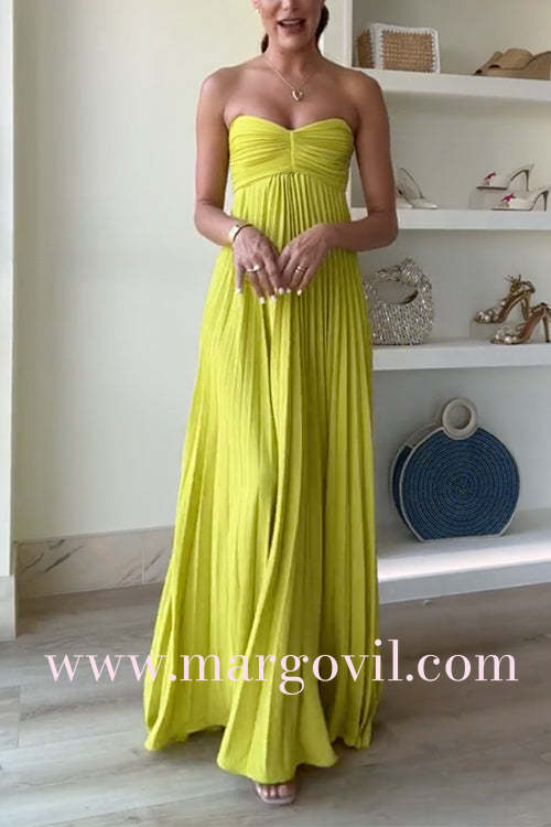Feel confident and elegant in our Margovil Exquisite Strapless Pleated Maxi Party Dress. This stunning dress features intricate pleating and a strapless design that effortlessly flatters your figure. Perfect for any party or special occasion, this dress will make you stand out with its exquisite style.