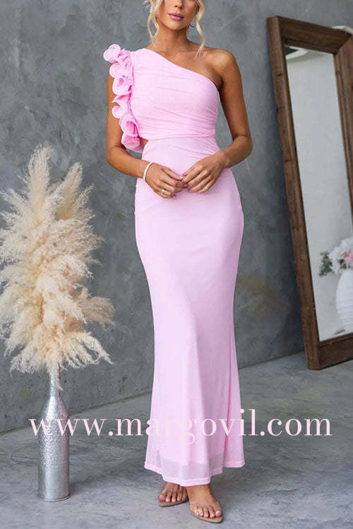 Margovil Frill One Shoulder Cut Out Bodycon Maxi Dress