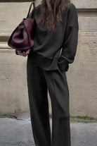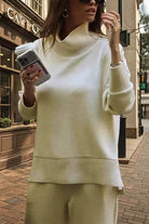 Discover ultimate comfort and style with the Margovil High Neck Side Zipper Up Sweatshirt and Wide Leg Pants Set.The sleek high-neck sweatshirt includes a practical side zipper for an adjustable fit, while the wide-leg pants offer a flattering, relaxed silhouette. Crafted from soft, durable fabric, this set effortlessly combines casual ease with modern sophistication, perfect for lounging, running errands, or casual outings. Elevate your wardrobe with this versatile set designed to keep you comfortable and stylish throughout the day.