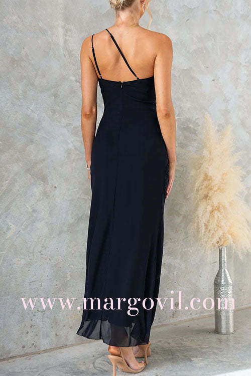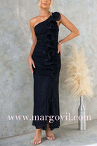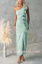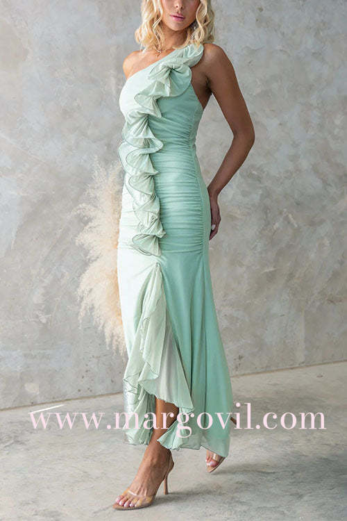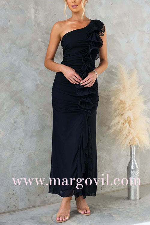 Margovil One Shoulder Slit Ruffle Mesh Maxi Dress