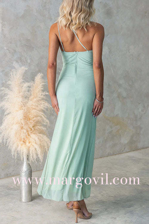 Elevate your evening look with the Margovil One Shoulder Slit Ruffle Mesh Maxi Dress. Featuring a chic one-shoulder design and a daring slit, this dress combines elegance with a touch of allure. The delicate ruffle and sheer mesh details add sophistication and movement, making it perfect for special occasions where you want to stand out with confidence and grace.