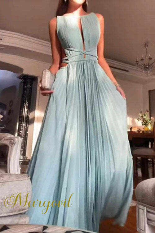 Margovil Sleeveless Cut Out Open Back Pleated Maxi Dress