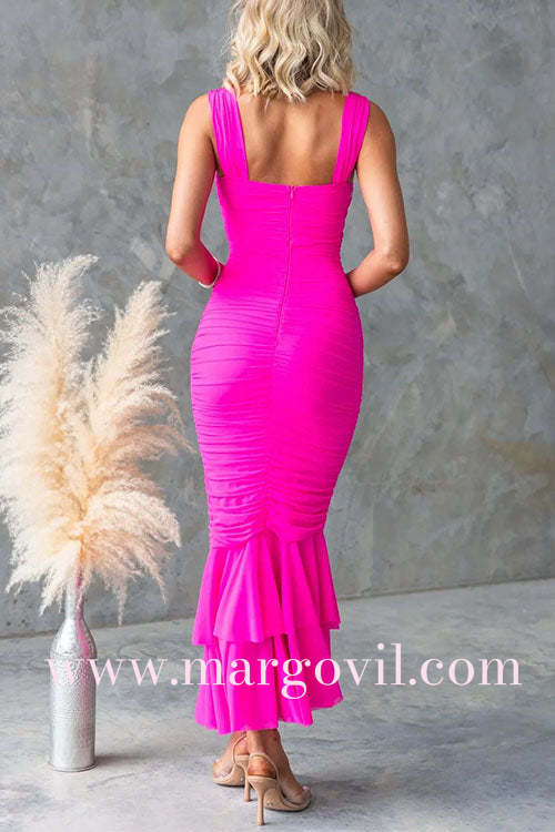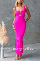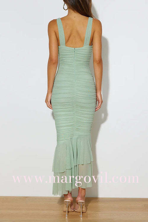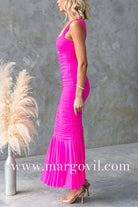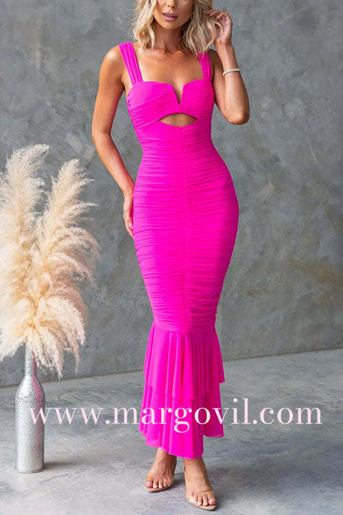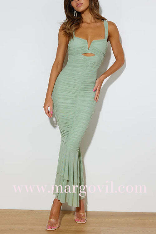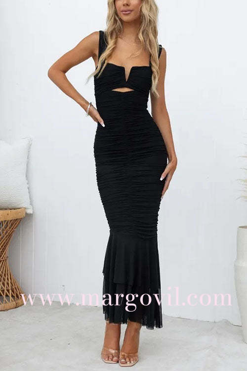 Margovil Sleeveless Cut Out Ruched Ruffle Bodycon Maxi Dress