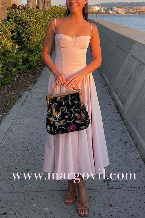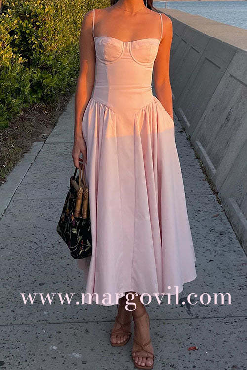 Margovil Spaghetti Strap Pocketed Corset Swing Midi Dress