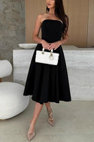 Margovil Strapless Open Back Waisted Swing Midi Dress