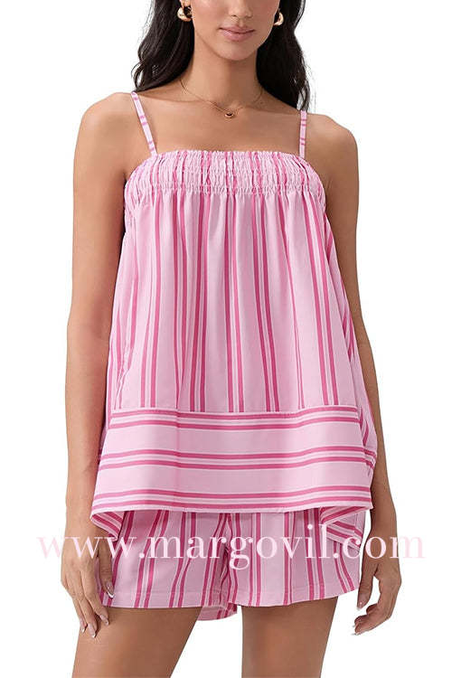 Margovil Striped Square Neck Cami Top and Shorts Lounge Set