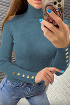 Margovil Turtleneck Gold Buttons Ribbed Knit Top