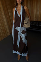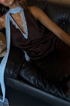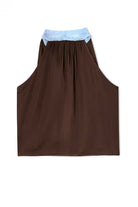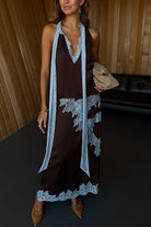 Sleeveless V Neck Lace Trim Satin Scarf Top