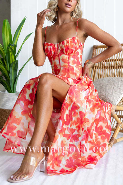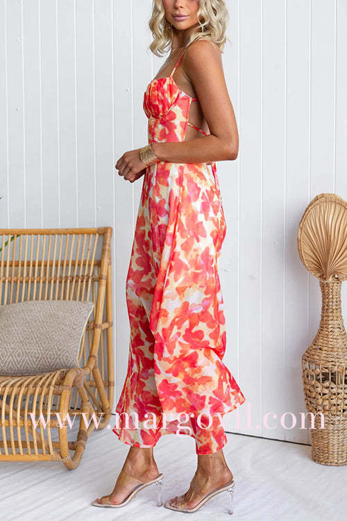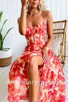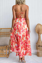 Sunset Watercolor Tie Back Slit Maxi Cami Dress