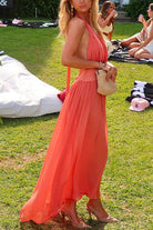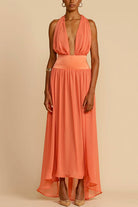 Margovil Deep V Neck Halter Backless Flowy Maxi Party Dress