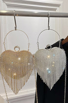 Be the center of attention with the Margovil Luxury Heart Shape Rhinestones Tassel Evening Handbag. Its intricate design features sparkling rhinestones and a charming tassel, perfect for a glamorous night out. With this handbag by your side, you'll exude elegance and sophistication.