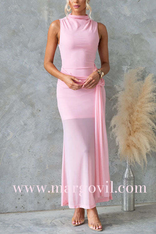 Unleash your inner goddess with our Mockneck Sleeveless Drape Front Maxi Dress. The elegant mockneck design combined with the flowing drape front creates a stunning silhouette that will turn heads. Perfect for any special occasion, this dress boasts both style and comfort, making you feel confident and beautiful.