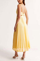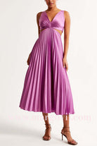 Looking for a dress that combines elegance and style? Look no further than our V Neck Cut Out Waist Sleeveless Pleated Maxi Dress! Featuring a flattering v-neck design, cut out waist detail, and beautiful pleated skirt, this dress will make you stand out at any event. Embrace sophistication and make a statement today!