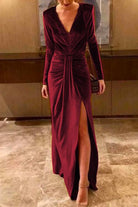 Margovil Deep V Neck Ruched Split Velvet Maxi Dress(5 Colors Available)