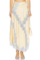 Margovil High Rise Color Block Lace Trim Satin Maxi Skirt