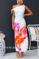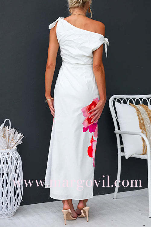 Asymmetric Shoulder Side Slit Floral Maxi Dress