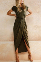 Margovil Crewneck Side Split Irregular Slim Dress