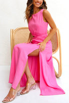 Margovil Sleeveless Cut Out Waist High Slit Maxi Swing Dress