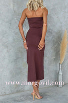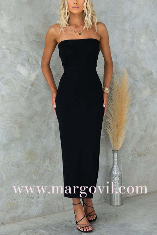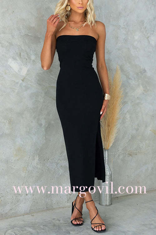 Strapless Tube Slit Ribbed Knit Midi Dress