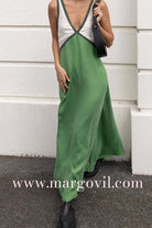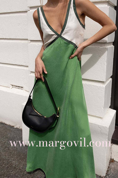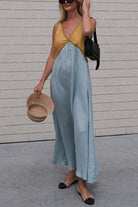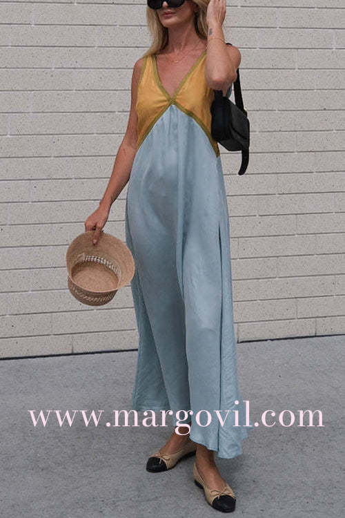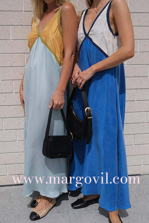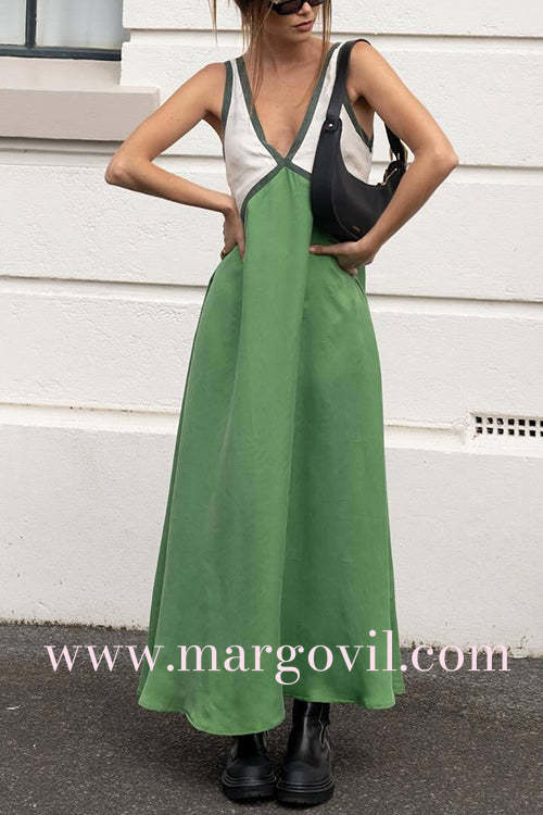 Margovil V Neck Color Block Sleeveless Maxi Swing Dress