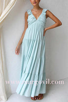 Margovil V Neck Ruffle Trim Tiered Sleeveless Linen Maxi Dress (2 Colors)