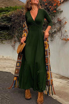 Margovil Wrap V Neck Long Sleeve Waisted Swing Dress