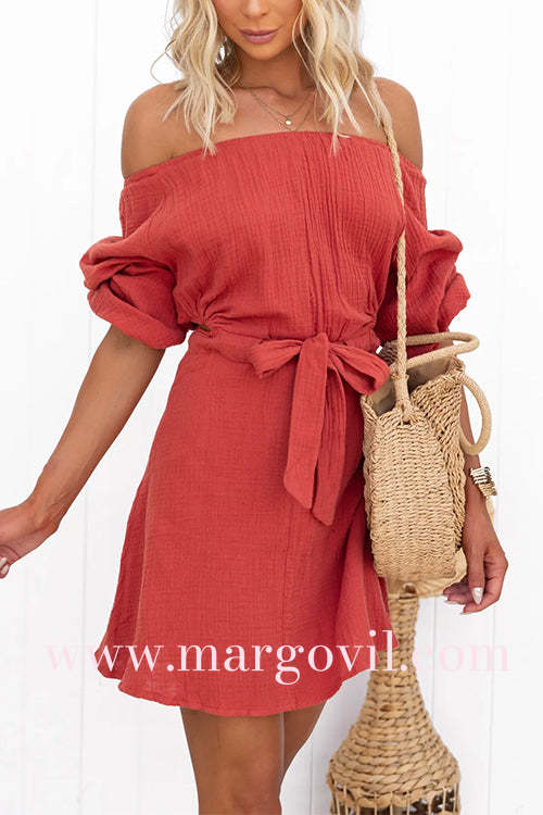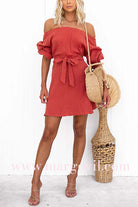 This off shoulder dress is perfect for any occasion. The A-line silhouette and tie waist accentuate your figure while the off shoulder design adds a touch of elegance. Made from high-quality fabric, it's both comfortable and stylish. Dress it up for a night out or keep it casual for a day out.