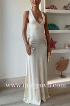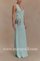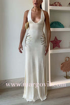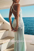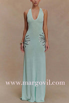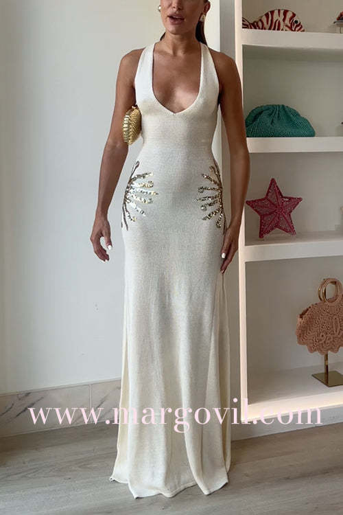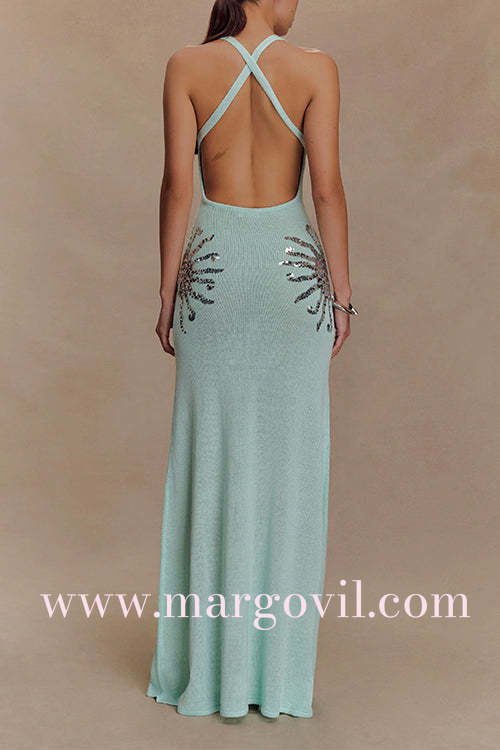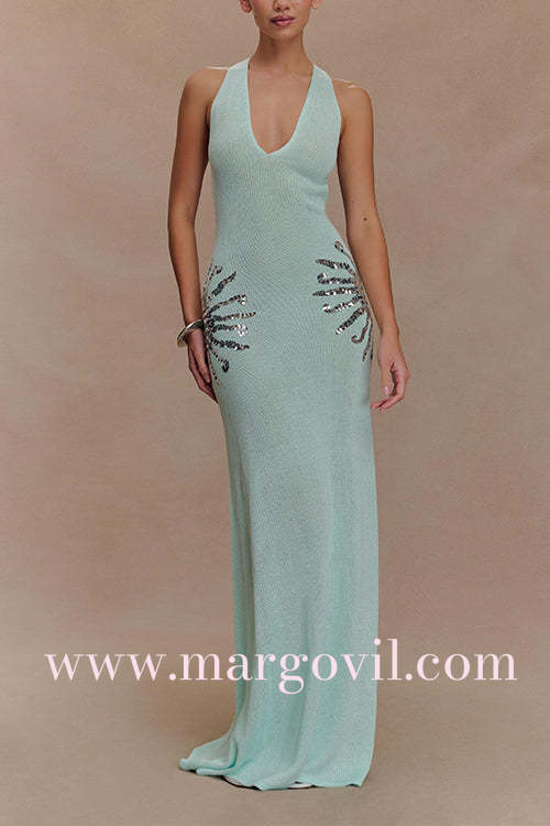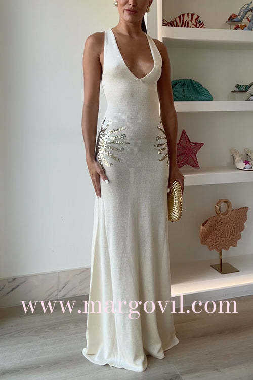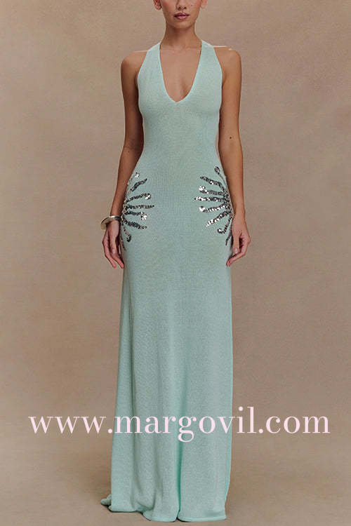 V Neck Sleeveless Open Back Knit Maxi Dress with Sequin