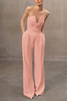 • Look fabulous and feel comfortable in our V Neck Strapless Pocketed Wide Leg Jumpsuit. Featuring a flattering V-neckline and wide leg design, this jumpsuit also has convenient pockets for practicality. Make a statement at any event in this stylish and functional piece!