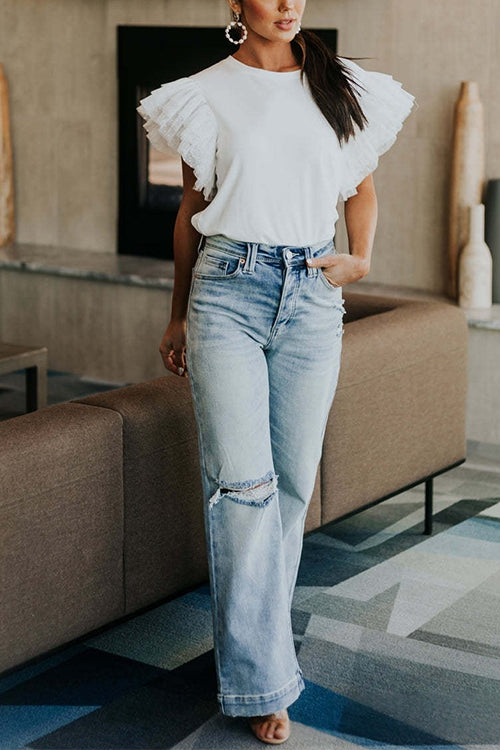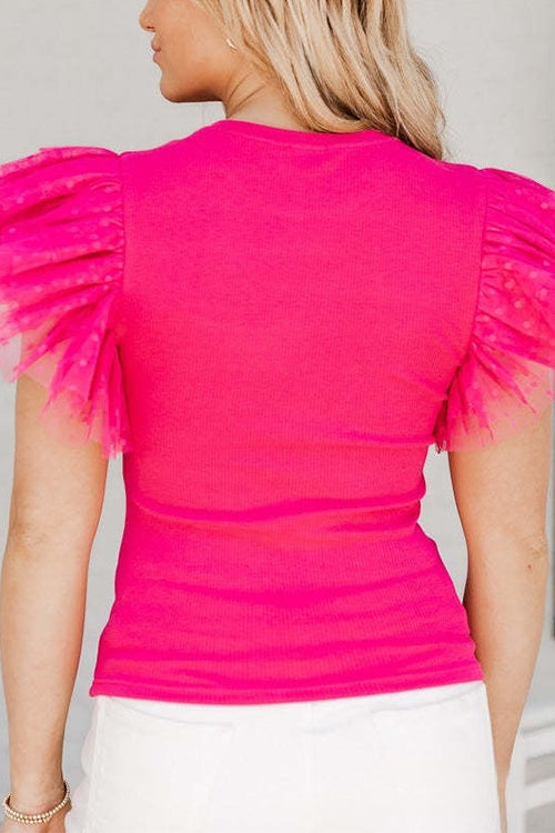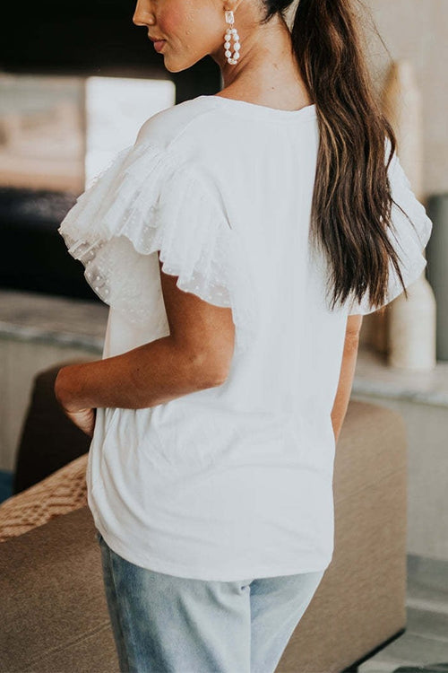 Margovil Round Neck Polka Dot Ruffle Short Sleeves Top