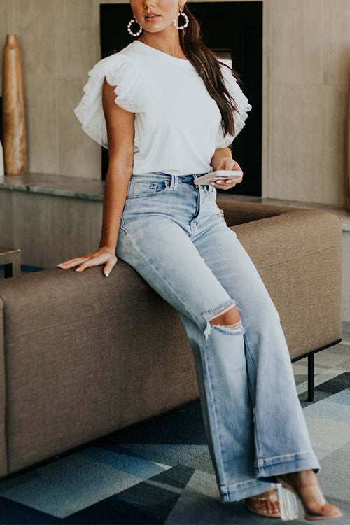 Discover effortless elegance with this delightful polka dot top, designed to bring joy to your daily style. The soft round neckline and charming ruffle short sleeves create a flattering silhouette that flatters every figure. Perfect for layering or wearing solo, this versatile piece transitions seamlessly from office to weekend adventures. The classic polka dot pattern never goes out of style, offering timeless appeal that pairs beautifully with your favorite bottoms. Invest in a top that delivers both comfort and confidence__ must-have addition to any modern wardrobe.