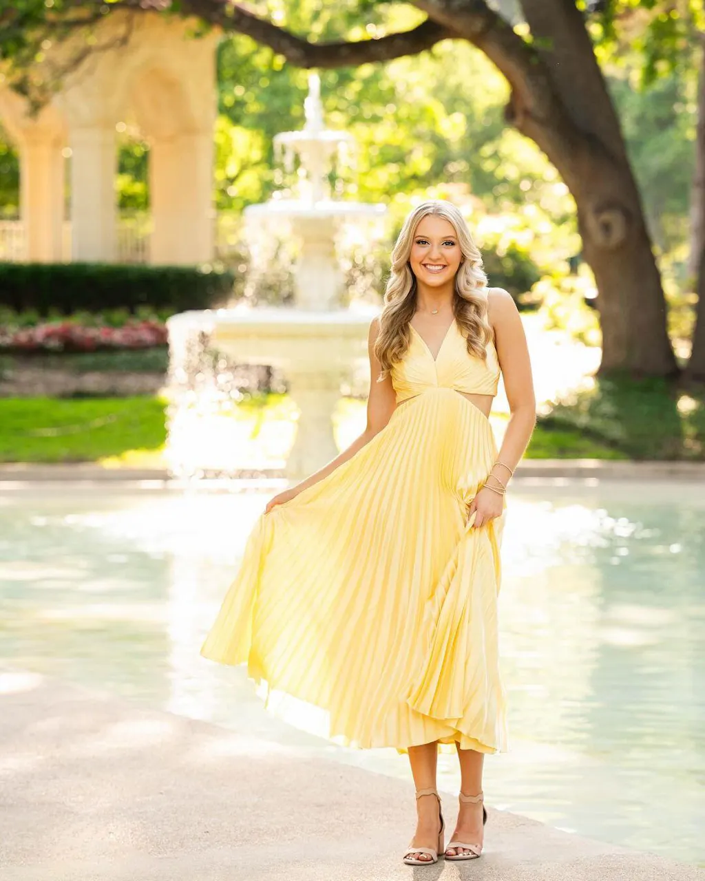 Looking for a dress that combines elegance and style? Look no further than our V Neck Cut Out Waist Sleeveless Pleated Maxi Dress! Featuring a flattering v-neck design, cut out waist detail, and beautiful pleated skirt, this dress will make you stand out at any event. Embrace sophistication and make a statement today!