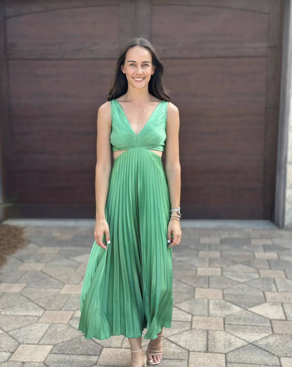 V Neck Cut Out Waist Sleeveless Pleated Maxi Dress